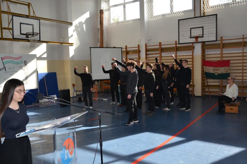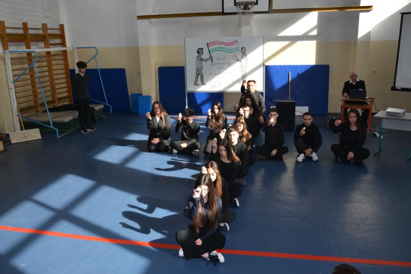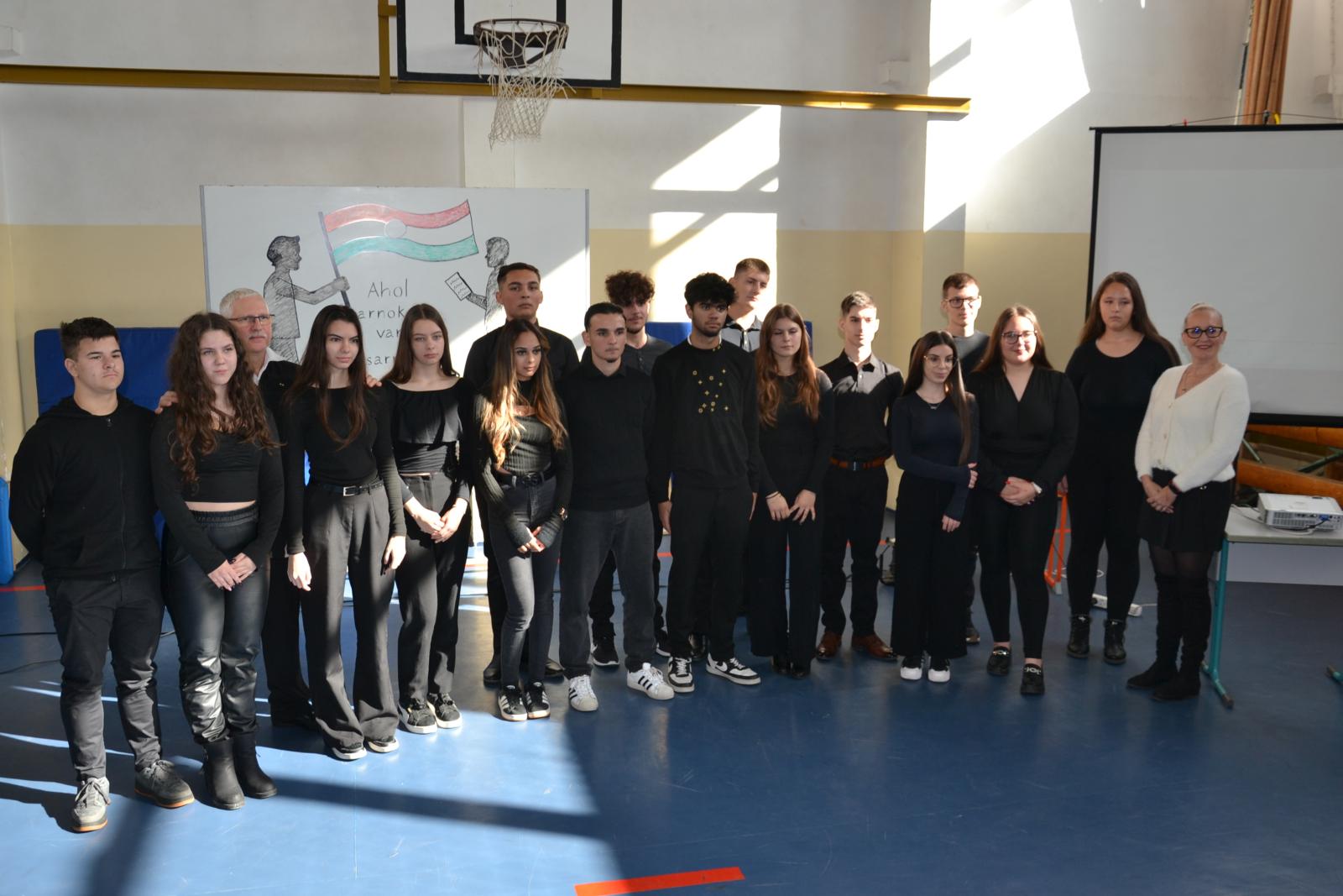 A meghitt és elgondolkodtató műsort a 10.a és 10.b osztály tanulói adták elő, méltó tisztelettel és komolysággal idézve fel a forradalom eseményeit.