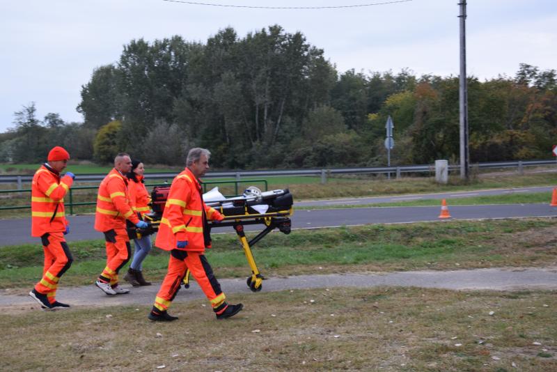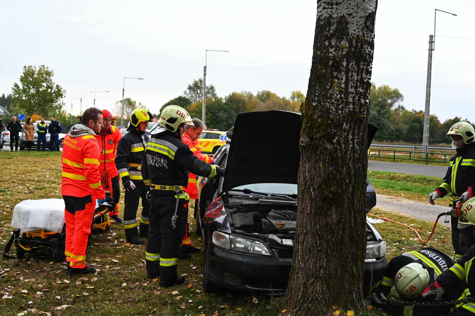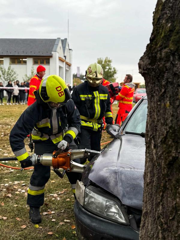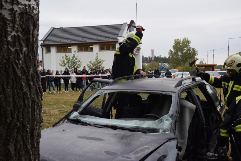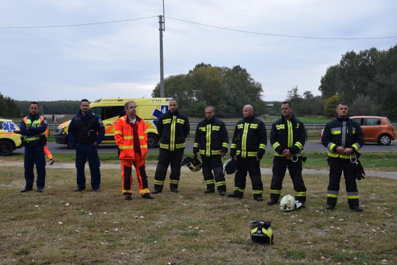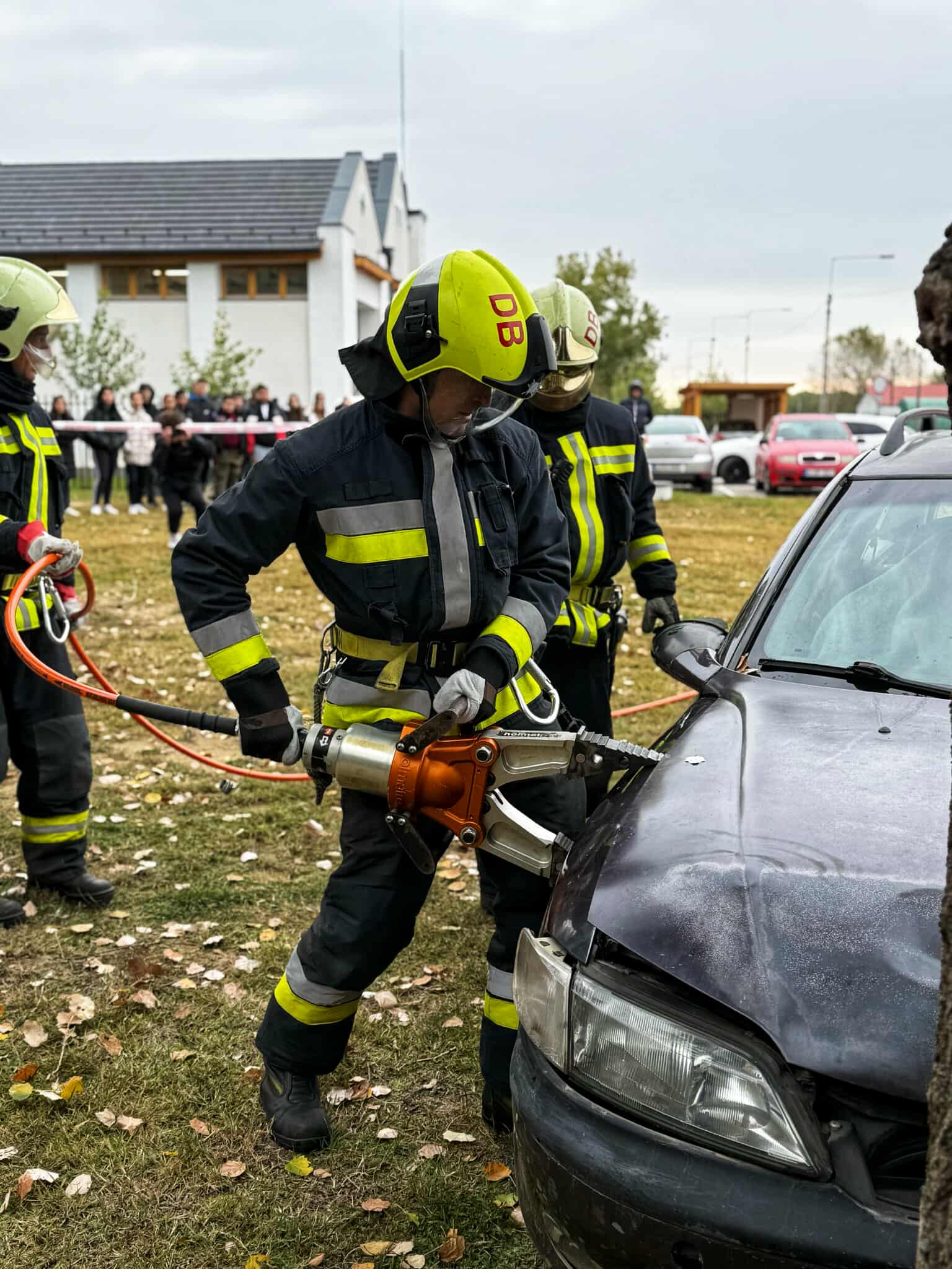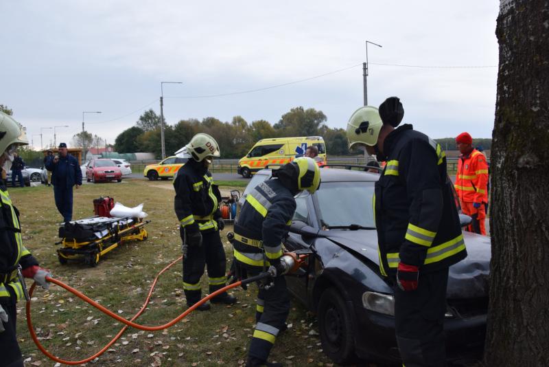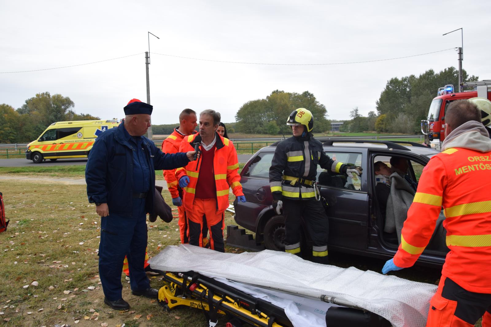 A tűzoltók látványosan mutatták be, hogyan használják a feszítő-vágó berendezést, hogyan mentenek ki beszorult sérülteket, a mentők pedig megmutatták, milyen gyors és precíz beavatkozásokkal stabilizálják a sérültek állapotát még a helyszínen.