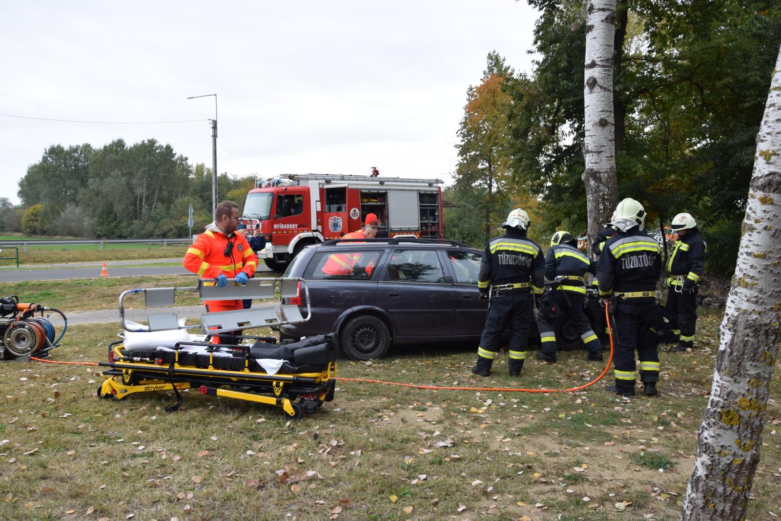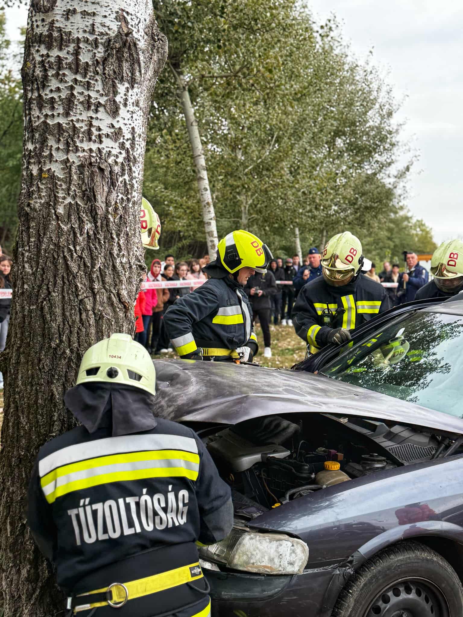 Köszönjük Varga Zsuzsának, aki gondoskodott arról, hogy a bemutatóhoz egy roncsautó is rendelkezésre álljon – ennek köszönhetően a gyakorlat nemcsak tanulságos, hanem élethű és látványos is lehetett.