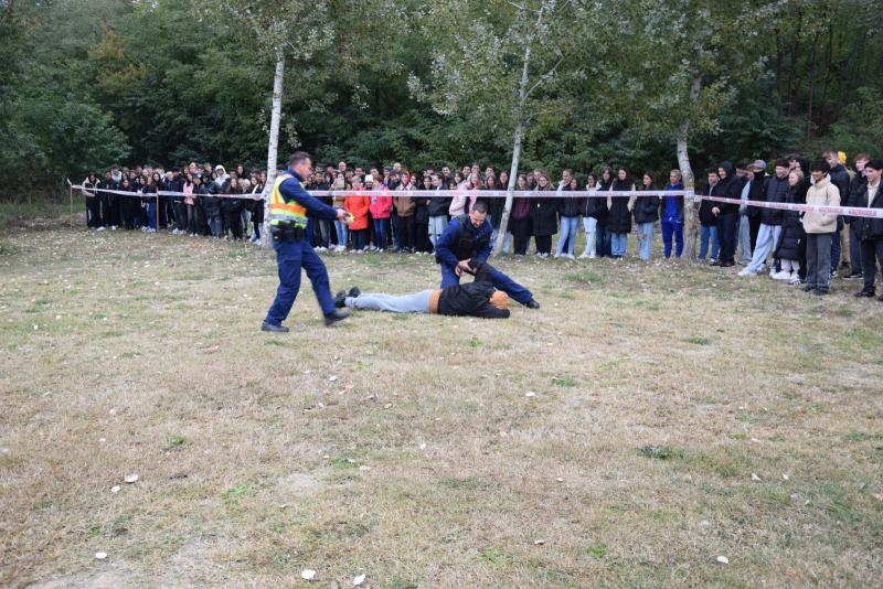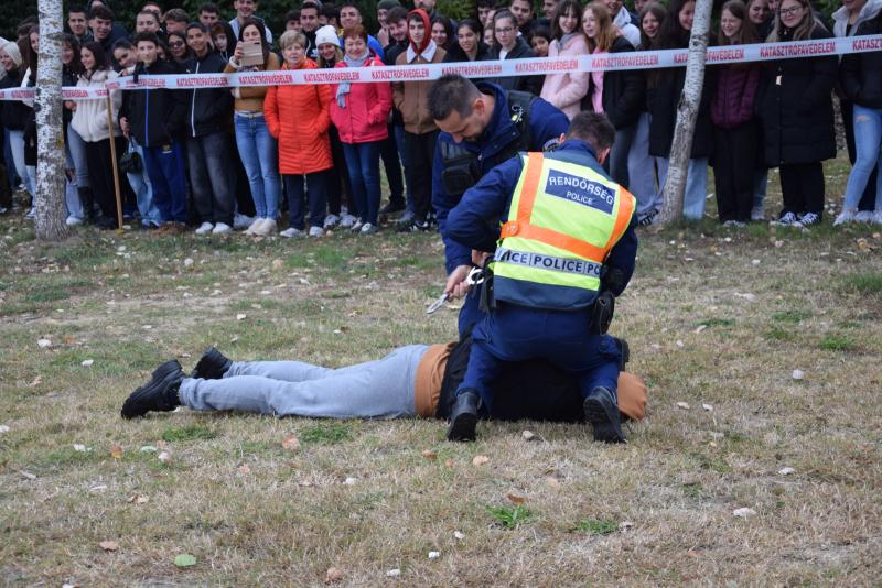 A diákok élőben követhették végig, hogyan zajlik egy üldözés, helyszínbiztosítás, mentés és műszaki mentés, hogyan dolgozik össze három hivatásrend egyetlen célért: az emberéletek megmentéséért.