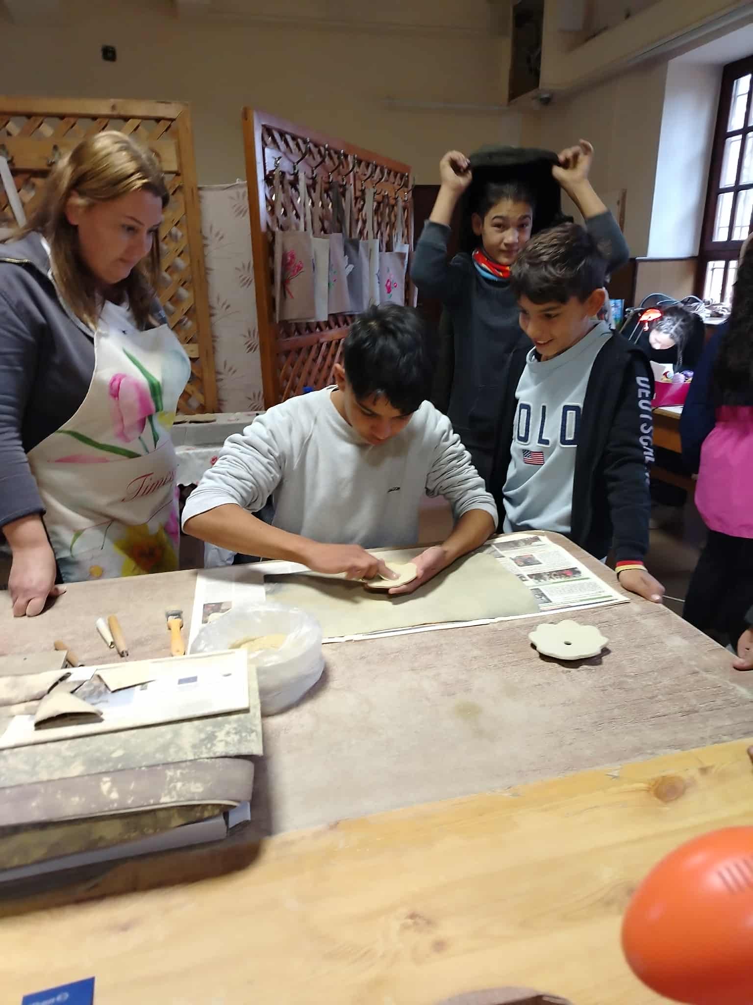 A gyerekek kisfilmeket néztek a régi mesterségekről, majd a Vagyonkezelő Kft.-nél és a közfoglalkoztatottak munkahelyén próbálhatták ki az agyagozást, kerámiakészítést, kosárfonást, szövést és varrást is.