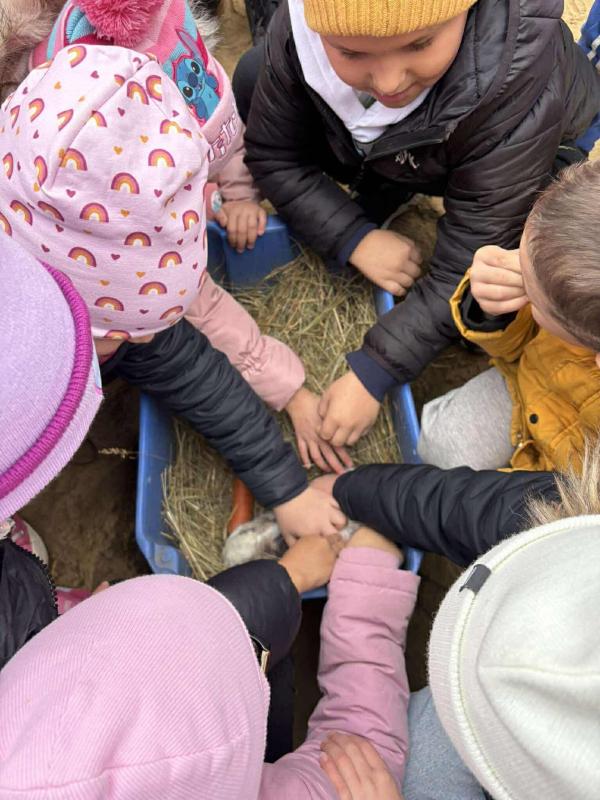 Két osztály ellátogatott a helyi állatfarmra is, ahol az állattartás rejtelmeivel ismerkedtek meg.