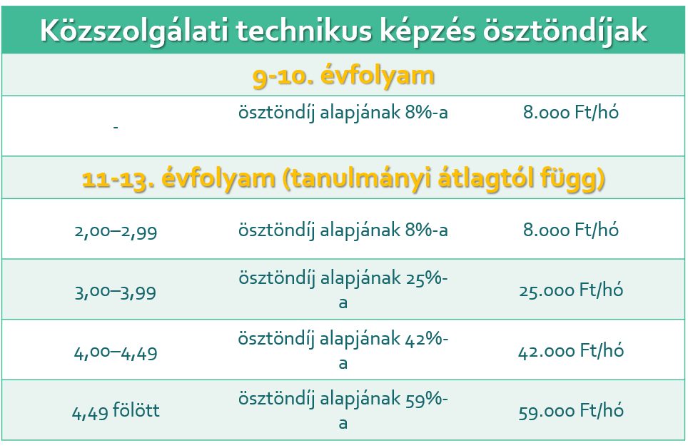 Az ösztöndíjjal kapcsolatos részletes szabályokat és az aktuális összegeket a Nemzeti Szakképzési és Felnőttképzési Hivatal honlapján, valamint a csatolt táblázatban találhatják meg.